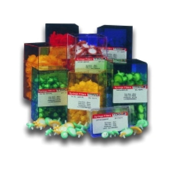 依膜材質區分: 1.混合纖維 (MCE) - 適用於水系溶液, 不適用於有機溶劑 2.尼龍 (Nylon) - 化學相容性良好, 適用於大部分HPLC溶劑 3.聚偏氟乙烯 (PVDF) - 適用於水溶液, 和多種有機溶劑相容 4.鐵氟龍 (PTFE) - 適用於侵略性溶劑、強酸, 不適用於水系溶液